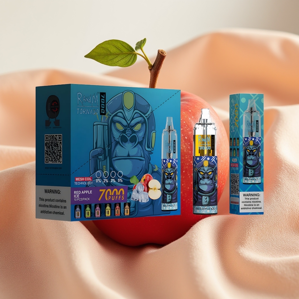 RandM Fumot Tornado 7000 Puffs 14ML 850MAH Mesh TypC RGB 0-5% Air Adj Red Apple Ice