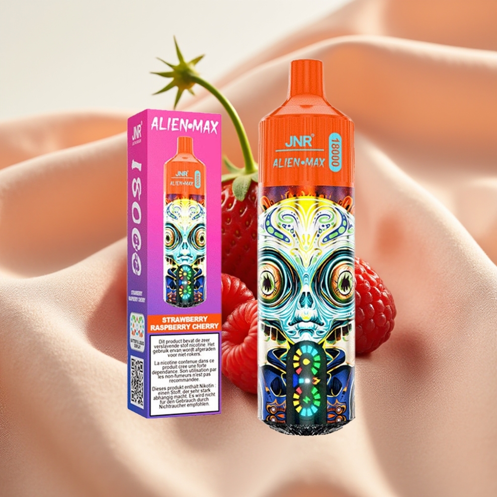 JNR Alien Max 18000 Puffs LED Display Dual Mesh Coil 28ml 850mAh Typ-C 0-5% Nikotin Erdbeere Himbeere Kirsche